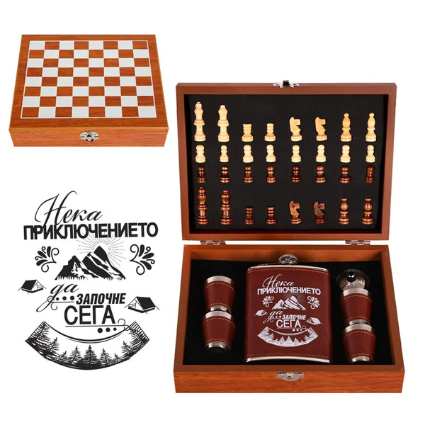 Комплект манерка с шах и аксесоари "Нека приключението..." . /8 oz = 237 милилитра/.