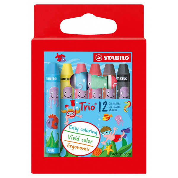 Комплект маслени пастели, Stabilo, Trio, 12 цвята