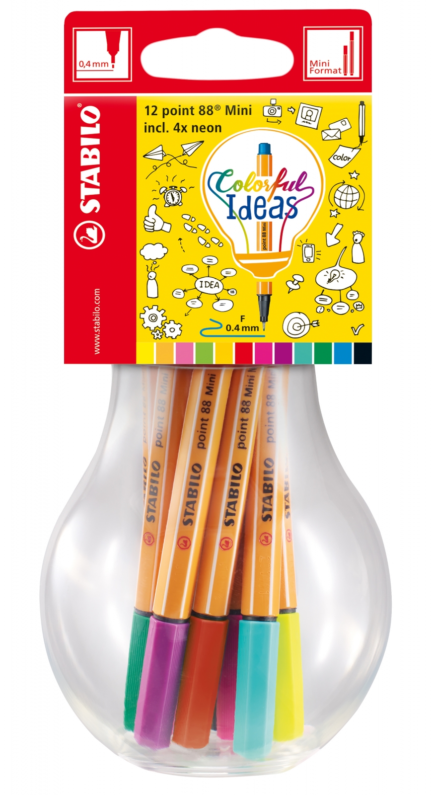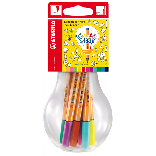 Комплект мини перманентни маркери, Stabilo, Point 88 в крушка, 12 броя