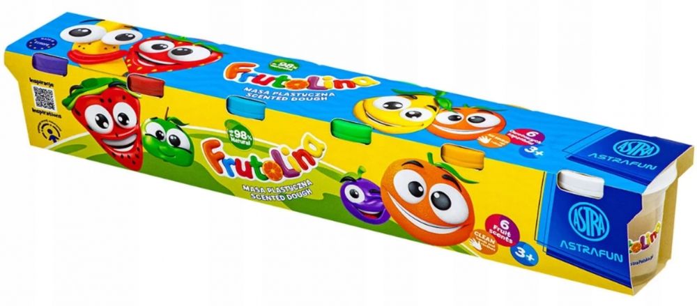 Комплект моделин в чаша, Astra, Frutolina, Ароматизиран, 6 цвята x 100 гр.