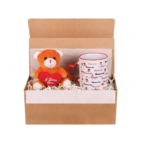 Kомплект "Обичам те!" с чаша и плюшено мече в подаръчна кутия.