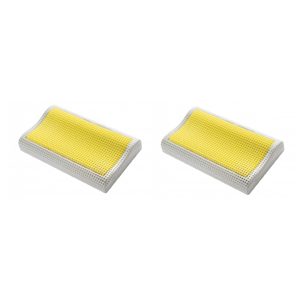 Възглавница AIR YELLOW CERVICAL е съставена от 100% мемори пяна и е с анатомична извивка. Тя е със сменяема калъфка с цип, състои се от два слоя мемори пяна, като вътрешния жълт слой е средно мек с антибактериална обработка и противоакарно въздействие.