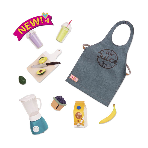 Този комплект е чудесен начин за насърчаване на здравословни хранителни навици при децата. Престилка, плодове, чаши с шейк, блендер и други необходими аксесоари за здравословните храни и напитки. Мисията на Our Generation е да бъде създадена не кукла само за игра, а такава която вдъхновява момичетата да бъдат такива, каквито искат. Куклите и аксесоари OG са представител на това поколение момичета, които имат различни интереси, но все още растат заедно и са приятели с онези, които имат различни истории за разказване. Действат като модел за подражание. Всяка от куклите има уникална история и индивидуалност! Част от продажбите на тези кукли отива в подкрепа на инициативата „Освободи детската сила на момичетата“. Играта с кукли развива в децата паметта. Чрез тях децата измислят сюжети, разрешават различни проблеми. Те са партньор по игра или най-добра приятелка.