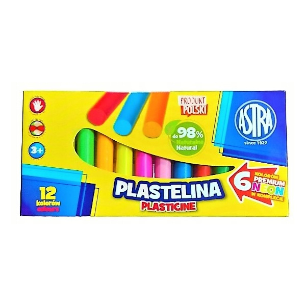 Комплект пластилин, Astra, 12 цвята (6 неонови цвята)