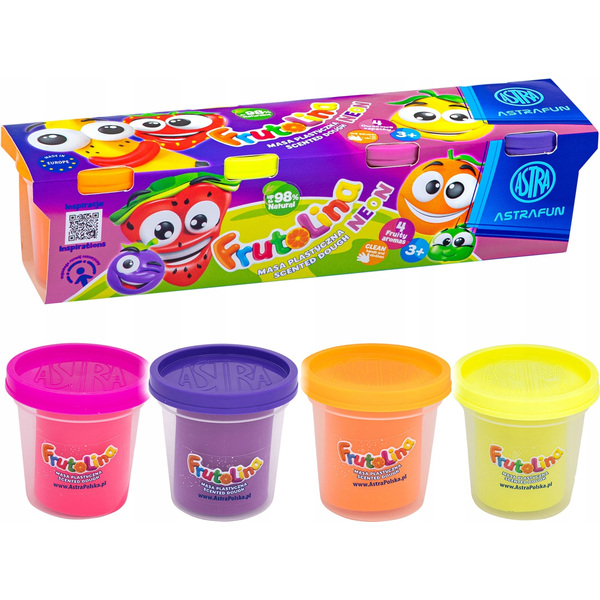 Комплект пластилин, Astra, Frutolina Neon, 4 броя