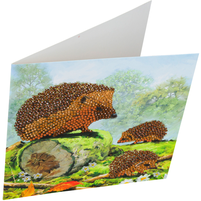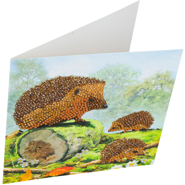 Комплект поздравителна картичка с диамантен живопис, Craft Buddy, Таралежчета, 18 x 18 см