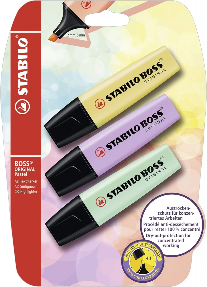 Комплект текст маркери, Stabilo, Boss Pastel, 3 цвята