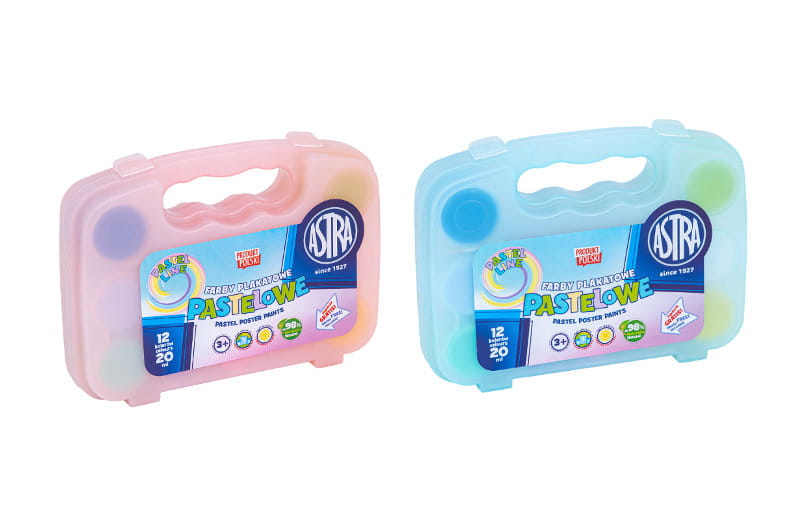 Комплект темперни бои в куфар, Astra, 12 цвята x 20 мл.