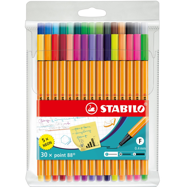 Комплект тънкописци, Stabilo, Point 88 25+5 neon, 30 цвята