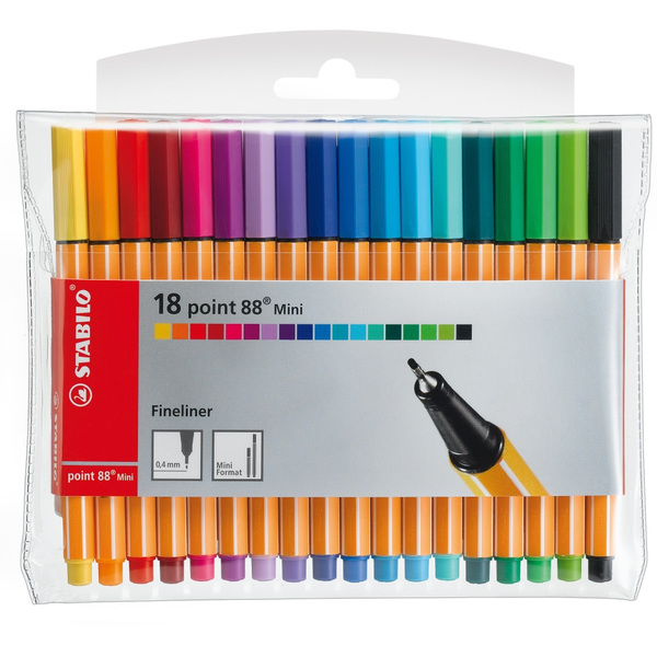 Комплект тънкописци, Stabilo, Point 88 Mini, 18 цвята