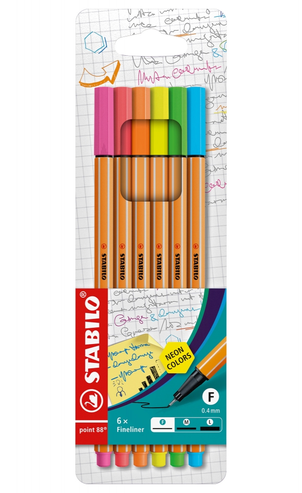 Комплект тънкописци, Stabilo, Point 88 Neon, 6 цвята