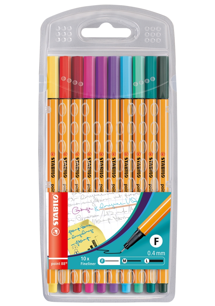 Комплект тънкописци, Stabilo, Point 88, 10 цвята