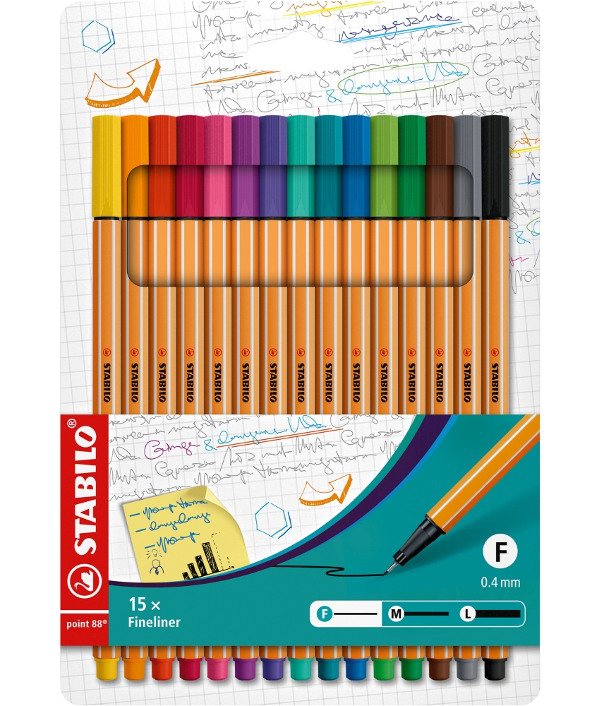Комплект тънкописци, Stabilo, Point 88, 15 цвята