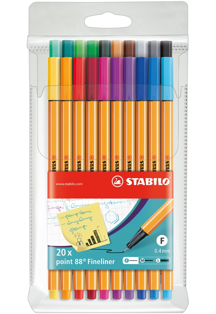 Комплект тънкописци, Stabilo, Point 88, 20 цвята