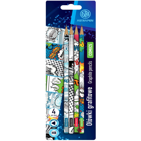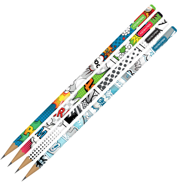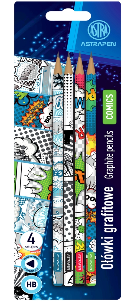 Комплект триъгълни графитни моливи, Astra, Comics, HB, 4 бр.