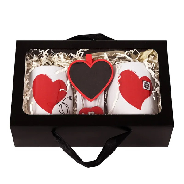 Kомплект за двама "Обичам те" с две чаши, катинар сърце с шифър и щипка сърце с място за надпис.