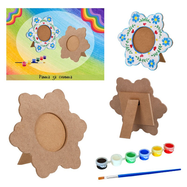 Комплект за творчество "Рамка за снимка" с боички и четка за оцветяване /дърво/.