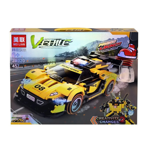 Конструктор 2 в 1 - Жълта Кола Робот с изстрелвачка
