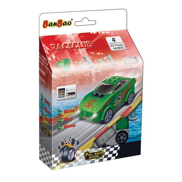 Конструктор, BanBao, Мини пулбек количка, Зелена, 26 части