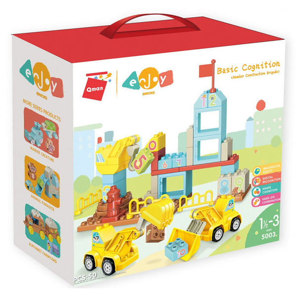 Конструктор, Qman, Строителни блокчета с цифри, 50 части