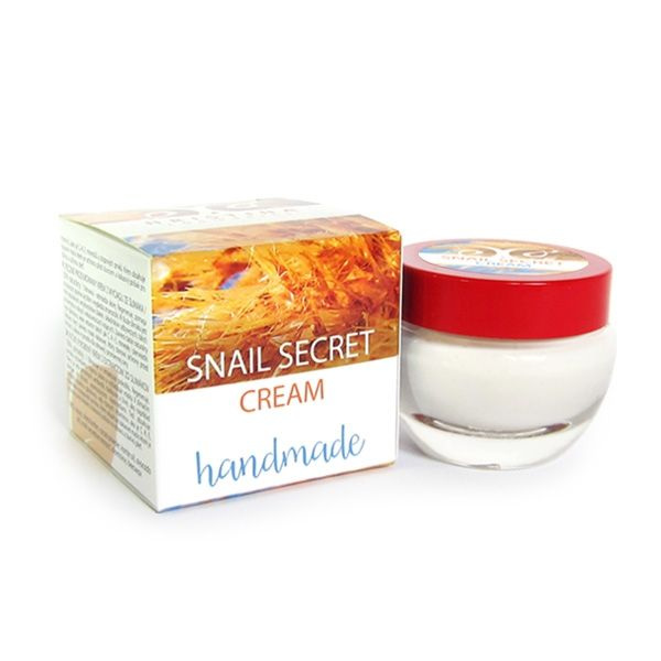 РЪЧНО ПРИГОТВЕН КРЕМ СЪС СЕКРЕТ ОТ ОХЛЮВ 24 часа 100% натурален РЕГЕНЕРИРАЩ Възстановява и подмладява кожата. Охлювната лига регенерира кожата, помага за бързото зарастване на белези и опъва бръчките. В секрета има много естествени антибиотици, протеини и полезни вещества като алантоин с мощни успокояващи свойства. Той съдържа и натурална гликолова киселина, букет от разнообразни витамини като С , А, Е минерали и олигоелементи. Съдържание: дистилирана вода, секрет от охлюв, жожоба, какаово масло, масло от шея, авокадово и кокосово масло, восък INCI: DISTILLATED WATER, JOJOBA OIL, HELLIX ASPERSA MULLER, CACAO BUTTER, BUTYROSPERMUM PARKII FRUIT, PERSEA GRATISSIMA OIL, BEESWAX