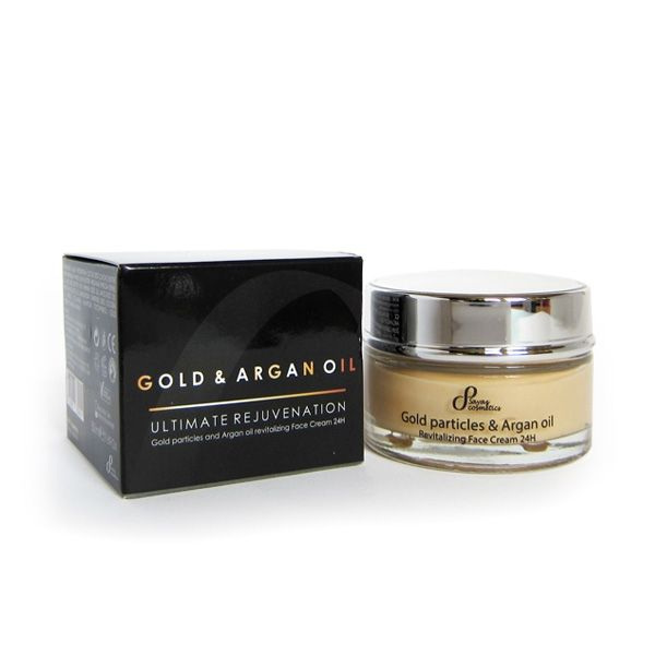 24 часова формула, която ще подмлади, озари и изглади кожата на лицето. Специално подбрани 24-каратови златни частици, действащи освежаващо, подмладяващо и дълбоко хидратиращо за кожата, в комбинация с подхранващото масло от арган, което ще подобри външния вид на кожата, ще тонизира, докато хидратира и защитава кожата през целия ден и нощ. Приложение: След почистване и тонизиране, нанесете на сухо и чисто лице, шия и деколте сутрин и вечер. Натурален продукт. Съдържа естествена слънце защита. INCI: AQUA, THEOBROMA COCOA SEED (CACAO) BUTTER, BUTYROSPERMUM PARKII (SHEA) BUTTER, ARGANIA SPINOSA KERNEL OIL, AVOCADO BUTTER, VITIS VINIFERA SEED OIL, AVOCADO OIL, RUBUS IDAEUS SEED OIL, SIMMONDSIA CHINENSIS SEED (JOJOBA) OIL, RETINOL, COLLAGEN, ALANTOIN, TOCOPHEROL, GOLD POWDER, CERA ALBA