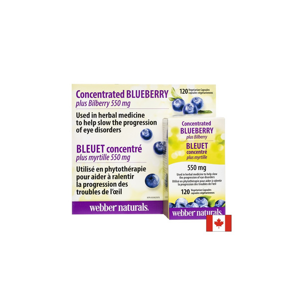 Синя + Черна боровинка на канадската компания Webber Naturals е естествен продукт подпомагащ зрението и микроциркулацията.