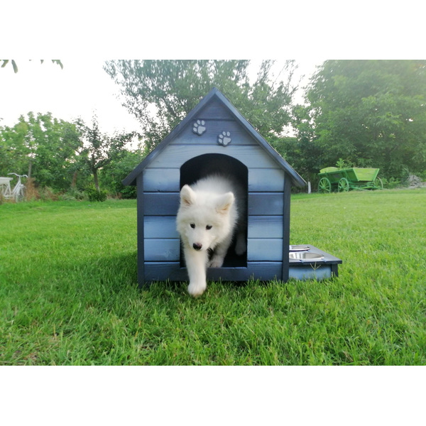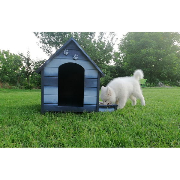 Перфектната къща за куче. Подходящ за използване на открито и в закрити помещения.Къщите за кyчета са изработени детайлно с висококачествени материали, което ги прави красиви и в същото време здрави. Разполагат с монтирани крачета, за лесно преместване и по-добра изолация от пода.Комплект купички и силиконова врата се продават отделно.
