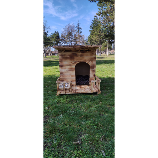 Перфектната къща за куче. Подходяща е за използване, както на открито в двора. Дървеният материал използван при изработката на къщата за кучета е от импрегниран и добре обработен иглолистна дървесина. Използваме единствено и само екологични и високоефективни лепила и консумативи, които гарантират за максималната безопасност на вашето куче и безупречната устойчивост на къщата срещу атмосферни влияния и други вредители.