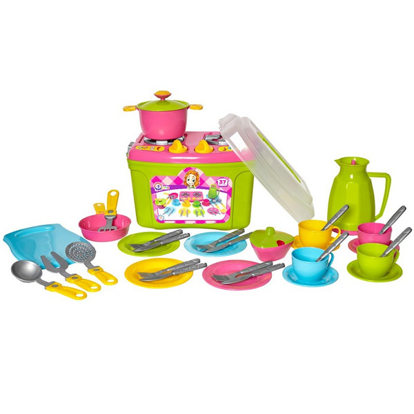 кухня в кутия с дръжка с тенджера дъска за рязане и кана с прозрачен капак 25х21х18