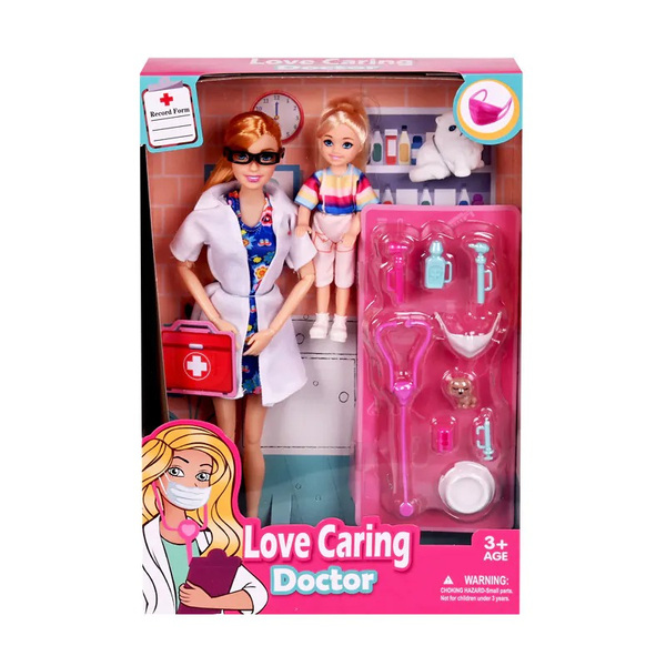 Кукла Доктор с малка кукла, кученце и аксесоари.