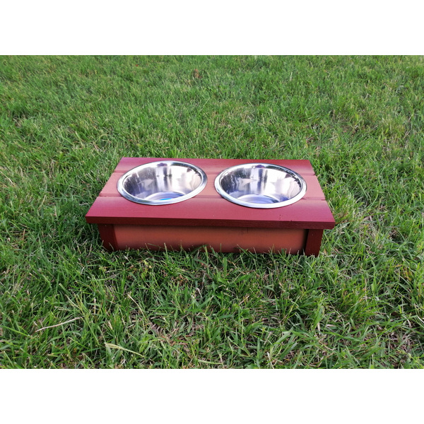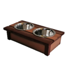 Дървена поставка с две купи за храна и вода.Подходяща за използване на открито и в закрити помещения. В комплект с нашите Приказни къщи или поотделно. Дървената поставка е изработена детайлно с естествени, висококачествени материали, което я прави красива и в същото време здрава. В съчетание с Вашия стил тя може да бъде боядисана с безвредни бои на водна основа, импегнирана или опушена. Металните купи са изработени от неръждаема стомана в разлчни размери.