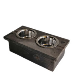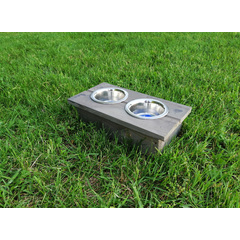 Дървена поставка с две купи за храна и вода.Подходяща за използване на открито и в закрити помещения. В комплект с нашите Приказни къщи или поотделно. Дървената поставка е изработена детайлно с естествени, висококачествени материали, което я прави красива и в същото време здрава. В съчетание с Вашия стил тя може да бъде боядисана с безвредни бои на водна основа, импегнирана или опушена. Металните купи са изработени от неръждаема стомана в разлчни размери.