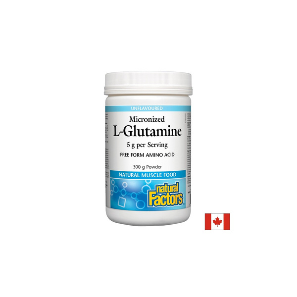L-глутаминът е есенциална аминокиселина, която помага за възстановяване след сериозни физически натоварвания или тежки болести. Това е най-изобилната киселина в скелетните мускули и плазмата и е важно хранително вещество за разрастването, оцеляването и възстановяването на клетките, предпазва тялото от възпаление и инфекции, помага за възстановяването при болести или стрес. Приемът на L-глутамин на Natural Factors след сериозна физическа активност защитава мускулните тъкани и подпомага растежа и развитието им. L-глутаминът се предлага под формата на пудра за по-бърза абсорбция, лесно се разтваря във вода и няма никакъв специфичен привкус.