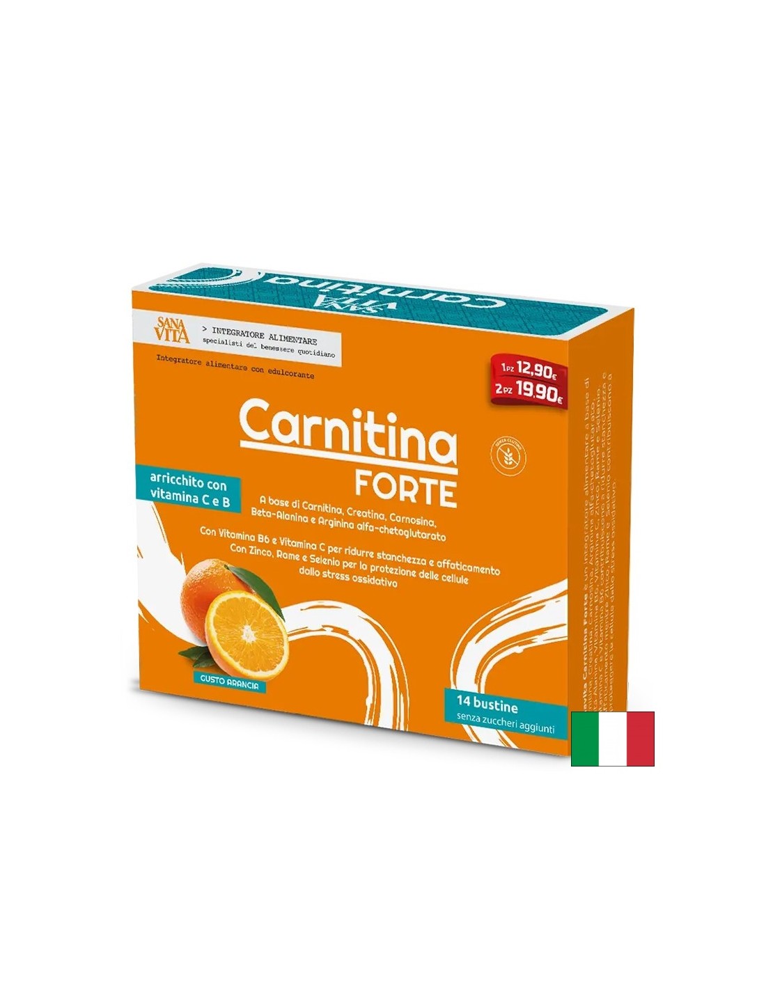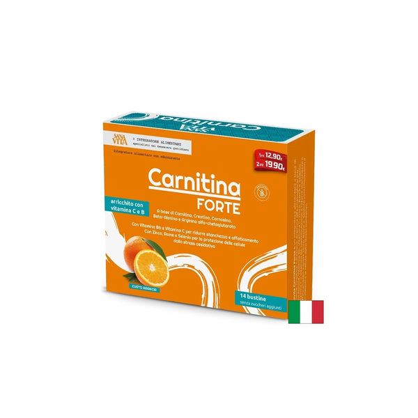 Sanavita Carnitine FORTE, от италианската компания Paladin Pharma е хранителна добавка, която подобрява физическата устойчивост благодарение на карнитин, креатин, витамини и минерали. Всяка опаковка съдържа 14 практични и лесни за употреба сашета, идеални за ежедневна употреба.