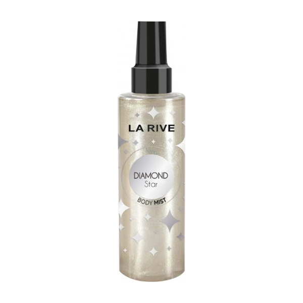 La Rive Diamond Star Боди мист с чувствен и деликатен аромат с плодови акценти.Нежно свежава кожата и добавя деликатен сребрист блясък към тена. Подходящ за ежедневна употреба.