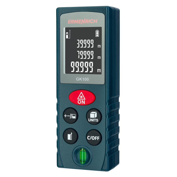<p>Лазерният измерител Ermenrich Reel GK100 е с много функции, които са необходими за повечето строителни, ремонтни и битови задачи. Той осигурява възможност за измерване на разстояния, площи и обеми. Функцията с използване на Питагоровата теорема помага в случаите, когато е невъзможно да се извършват измервания по традиционния начин: чрез две междинни измервания ще получите разстоянието до желаната точка. Вграден нивелир с мехурче.</p>