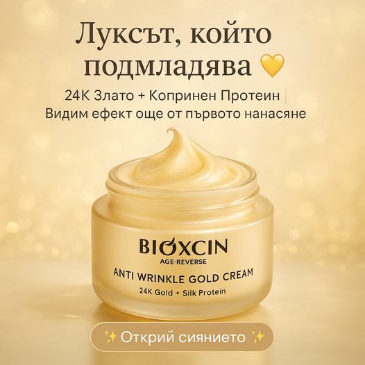 Ето какво прави Bioxcin Gold Cream, благодарение на луксозната си формула с 24K Злато и Копринен Протеин: ✅ Видимо изглажда бръчките и фините линии още след първите нанасяния ✅ Стяга кожата и ѝ връща свежия, младежки вид ✅ Намалява следите от умора и стрес – кожата изглежда отпочинала и гладка