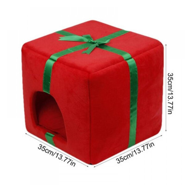Плюшена къща куб подходяща, както за котки, така и за дребни породи кучета. Мека и топла плюшена материя за зимата и допринасяща за коледния дух.