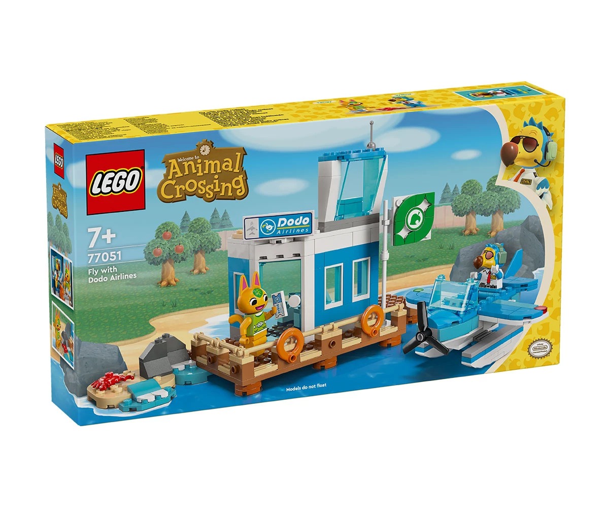 Въображението на децата полита с комплекта за игра LEGO® Animal Crossing™ Летете с Dodo Airlines (77051). Момичета и момчета на възраст над 7 години се качват на борда на хидроплана от LEGO, за да изследват нов остров, точно както биха направили във видеоиграта Animal Crossing. Този комплект с играчки за построяване има множество функции и позволява на децата да разиграват свои собствени истории в познатата обстановка на Animal Crossing. Точно както във видеоиграта, летището има кей, водещ до плаж, контролна кула и отварящ се оранжев изход. След като момичетата и момчетата построят самолета, пътниците могат да се качат на борда с билета. Децата завъртат витлото на хидроплана и си представят, че изпращат минифигурите на пилота Wilbur и Tangy до нова островна дестинация. Този комплект е включен в приложението LEGO Builder, където децата могат да мащабират и завъртат модели в 3D и да открият как да персонализират знамето на летището. С комплектите за игра LEGO Animal Crossing креативните момчета и момичета се потапят в забавлението от видеоигрите.