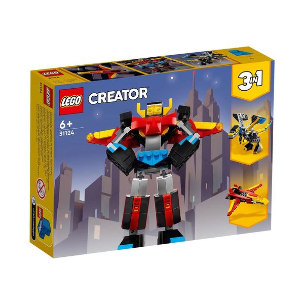 - Играчка „3 в 1“ – Децата ще се забавляват с игри на въображението с този комплект за строителство Супер робот (31124), който съдържа „3 модела в 1“: робот, дракон и реактивен самолет;