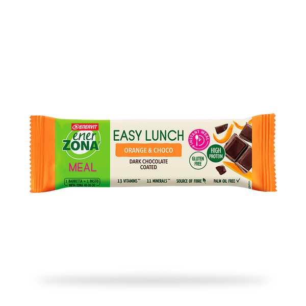Enerzona лесен обяд с вкус на портокал и шоколад е заместител на едно хранене с цел здравословен контрол на теглото. Лесният обеден бар Enerzona е богат на витамини и минерали. Благодарение на балансираното хранене 40-30-30 и спазвайки диета зоната, този продукт може да се използва, като заместител на хранене: обяд или вечеря. Разбира се, може да се консумира и при спазването на всяка друга диета, която е с цел контрол на теглото.