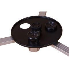 <p>Телескопът е монтиран върху лек алуминиев триножник. Височината на краката може да се регулира: това позволява телескопът да се регулира до височината на наблюдателя. На триножника лесно се поставя поставка за принадлежности. Върху нея можете да оставяте допълнителни окуляри, звездна карта, компас и всякакви малки елементи.</p>