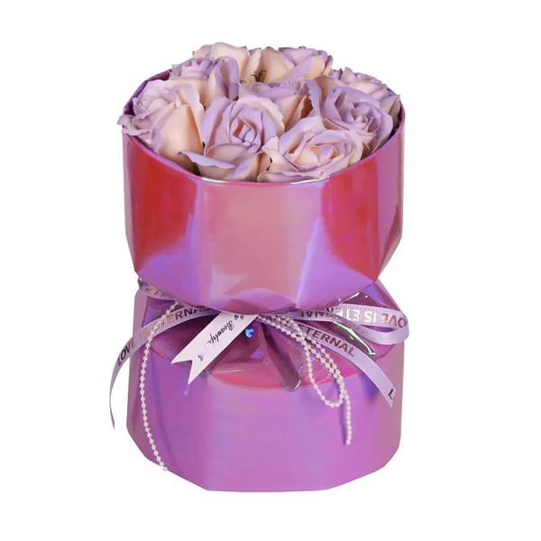 Луксозен букет от вечни цветя с декорация в подаръчна кутия.