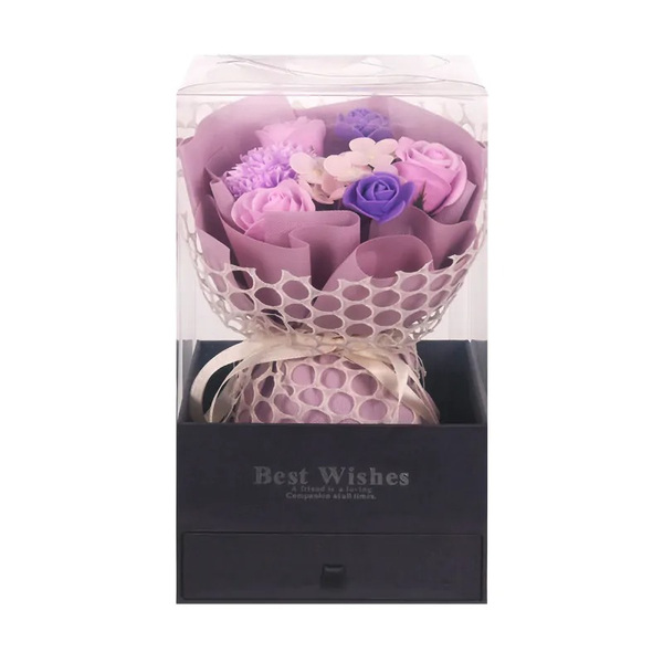 Луксозен букет от вечни цветя с декорация в подаръчна кутия с чекмедже.