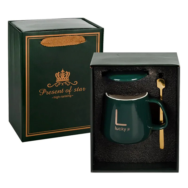Луксозен комплект "Lucky" чаша с капак и лъжичка в стилна кутия с дръжки.