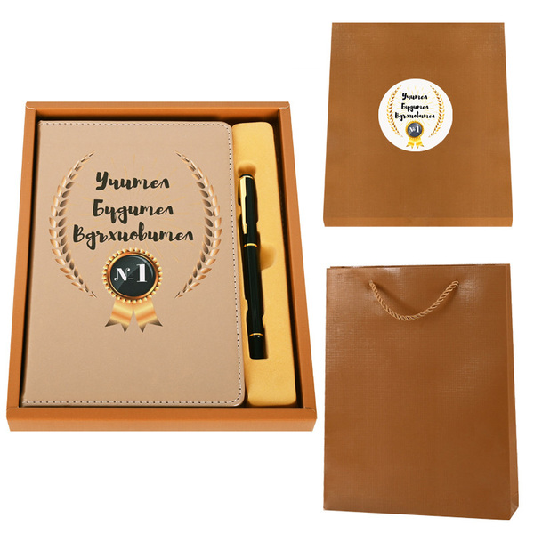 Луксозен комплект "Учител, Будител, Вдъхновител №1" с кожен бележник мелатен химикал в подаръчна кутия и опаковка.