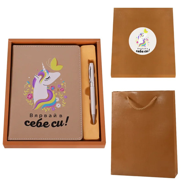 Луксозен комплект "Вярвай в себе си" с кожен бележник мелатен химикал в подаръчна кутия и опаковка.