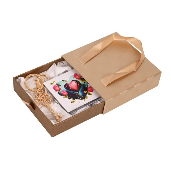 Луксозен метален ключодържател и огледало в подаръчна кутия.