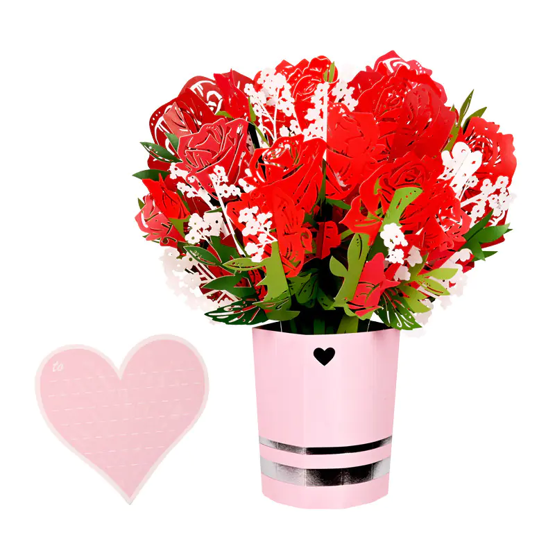 Луксозна 3D картичка Букет с плик и място за надписване на пожелание.